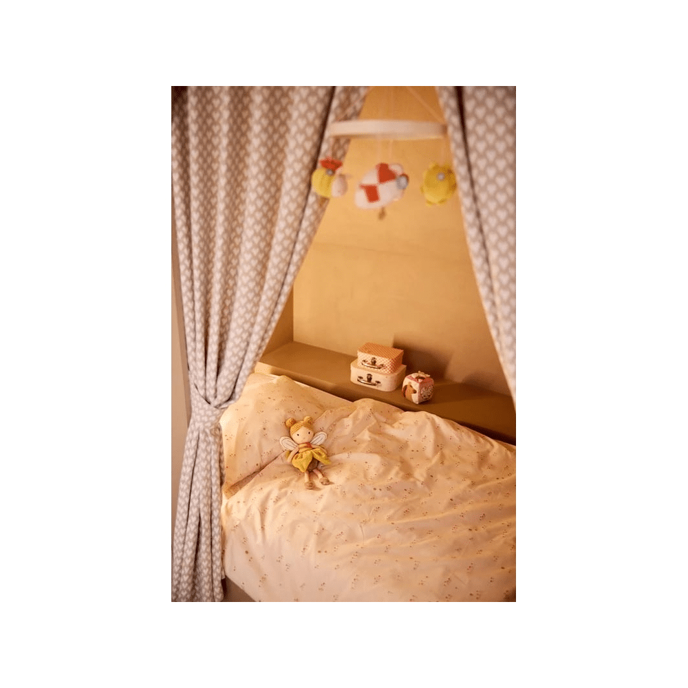 Met dit dekbedovertrek creëer je een knusse en speelse sfeer in de kinderkamer. De combinatie van vrolijke prints en zachte kleuren zorgt ervoor dat je kindje met een glimlach gaat slapen en wakker wordt.Dromen tussen bloemetjes en bijtjes