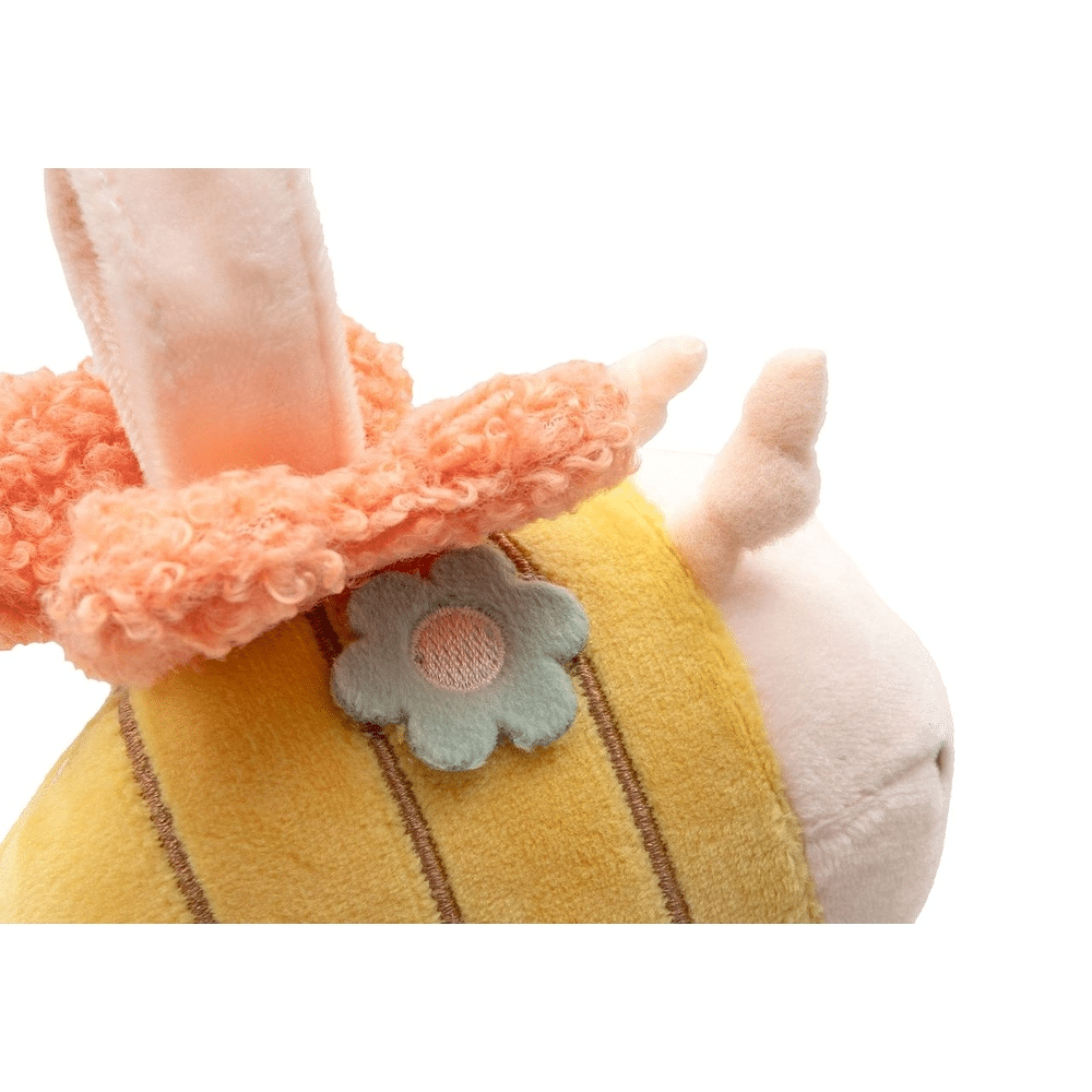 Deze zachte wagenhanger van Jollein uit de Pretty Picnic collectie brengt meteen een glimlach op het gezichtje van je baby. Het lieve bijtje heeft een geborduurd gezichtje en speelse details die de aandacht trekken. Binnenin vind je knisperend papier en een klein belletje, perfect voor de zintuiglijke ontwikkeling van je kleintje.Waarom is deze wagenhanger zo leuk?