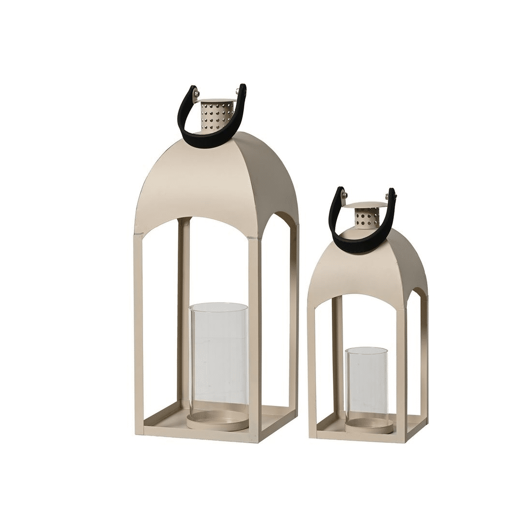 Breng een warme kerstsfeer in huis met deze set van twee lantaarns van ijzer in zandkleur. Perfect om kaarsen of ledlichtjes in te plaatsen en zo een gezellige, sfeervolle ambiance te creëren tijdens de feestdagen. Het robuuste ijzer geeft een rustieke uitstraling die moeiteloos past bij je kerstdecoratie. Zet ze binnen of buiten en geniet van magische winteravonden.