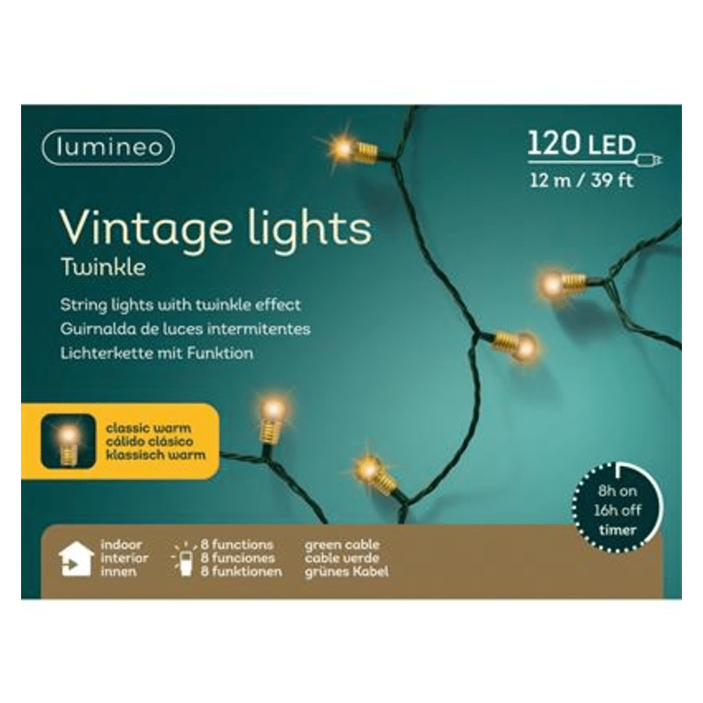 - Product: Kerst Led Vintage Lights 1190cm 120 Lampjes Groen Klassiek Warm