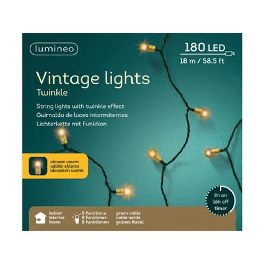 - Product: Kerst Led Vintage Lights 1790cm 180 Lampjes Groen Klassiek Warm