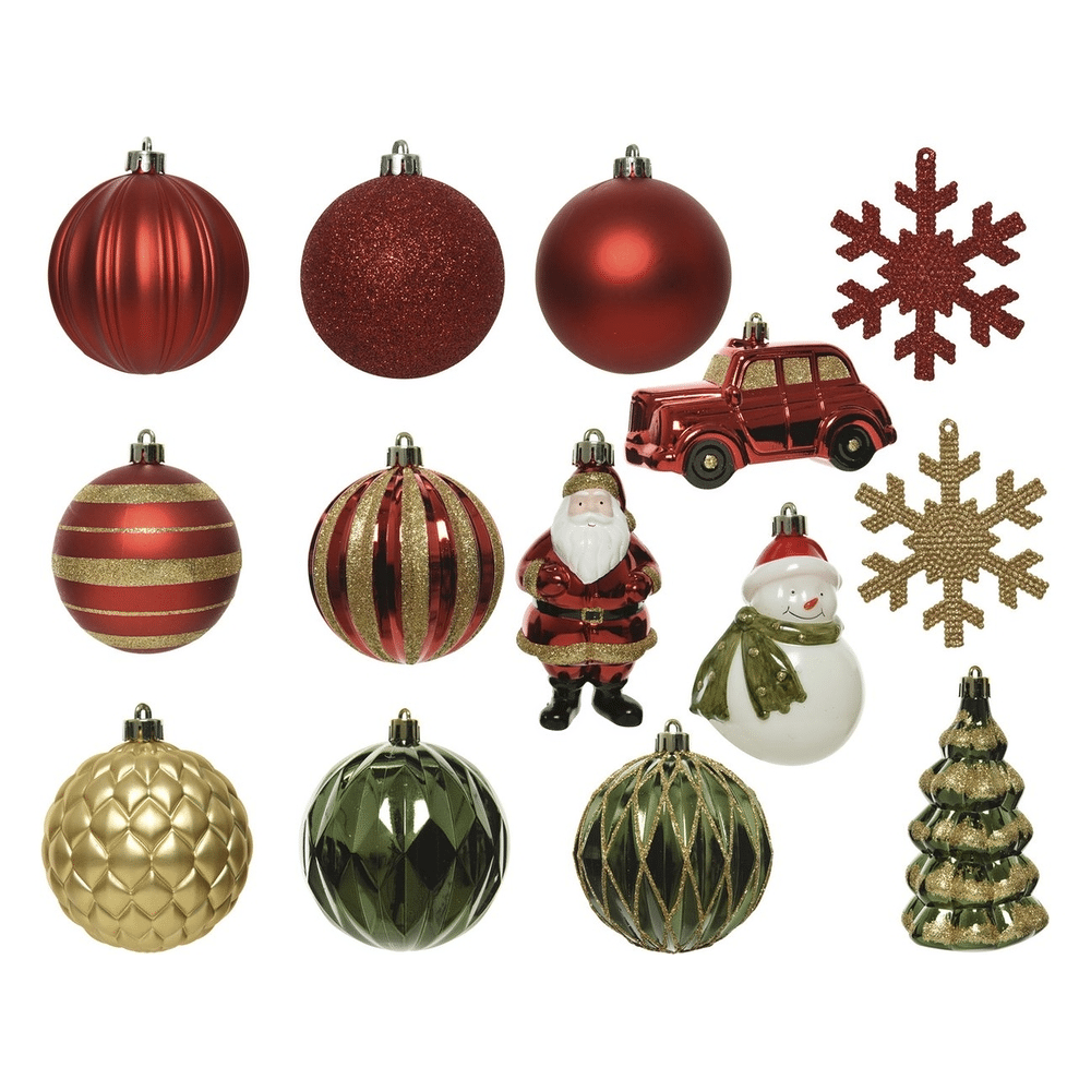 Kerstballen Kunststof 25st In Doos Mix Red / Green / Gold