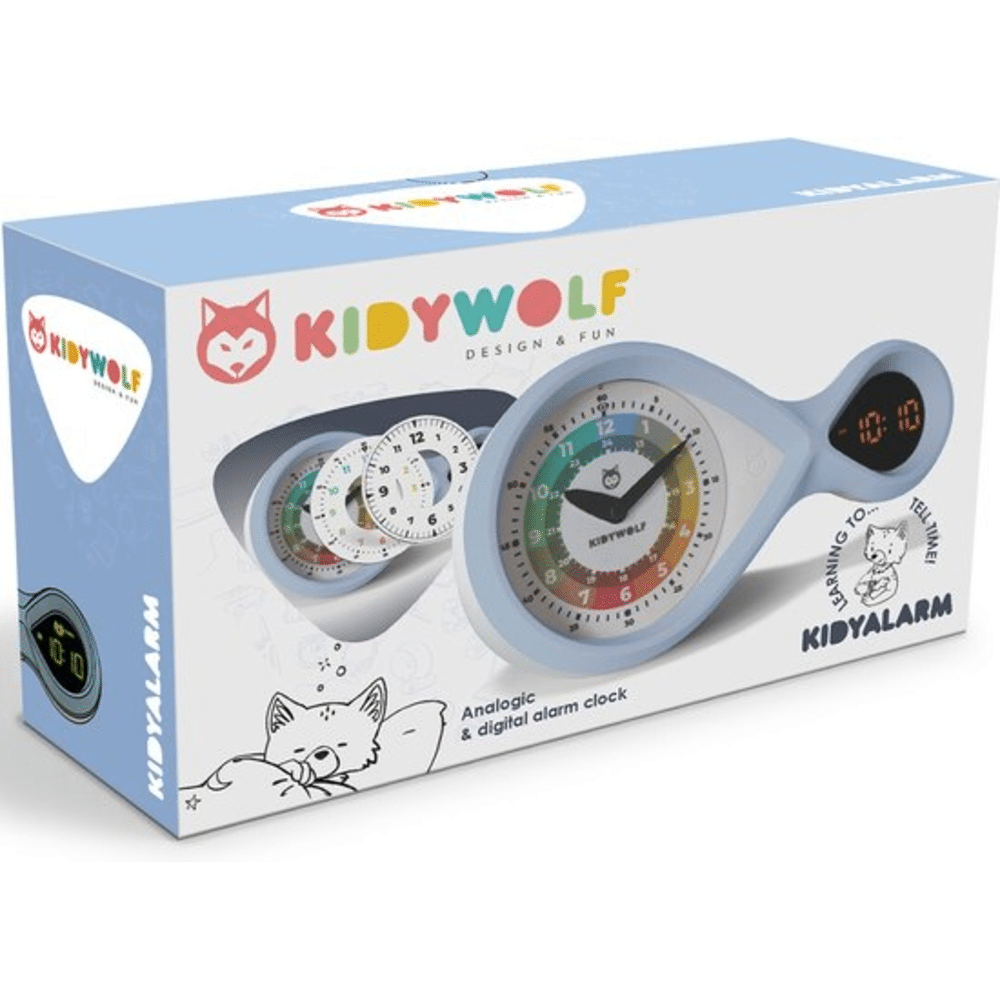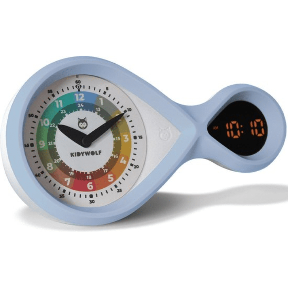 De Kidywolf wekker Blue met fosforescerende wijzerplaat en digitaal display is praktisch, stijlvol en gebruiksvriendelijk. Een perfecte keuze voor een overzichtelijk en speels begin van de dag.Kidywolf wekker met fosforescerende wijzerplaat en digitaal display