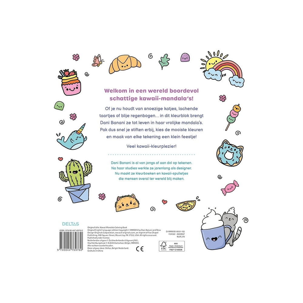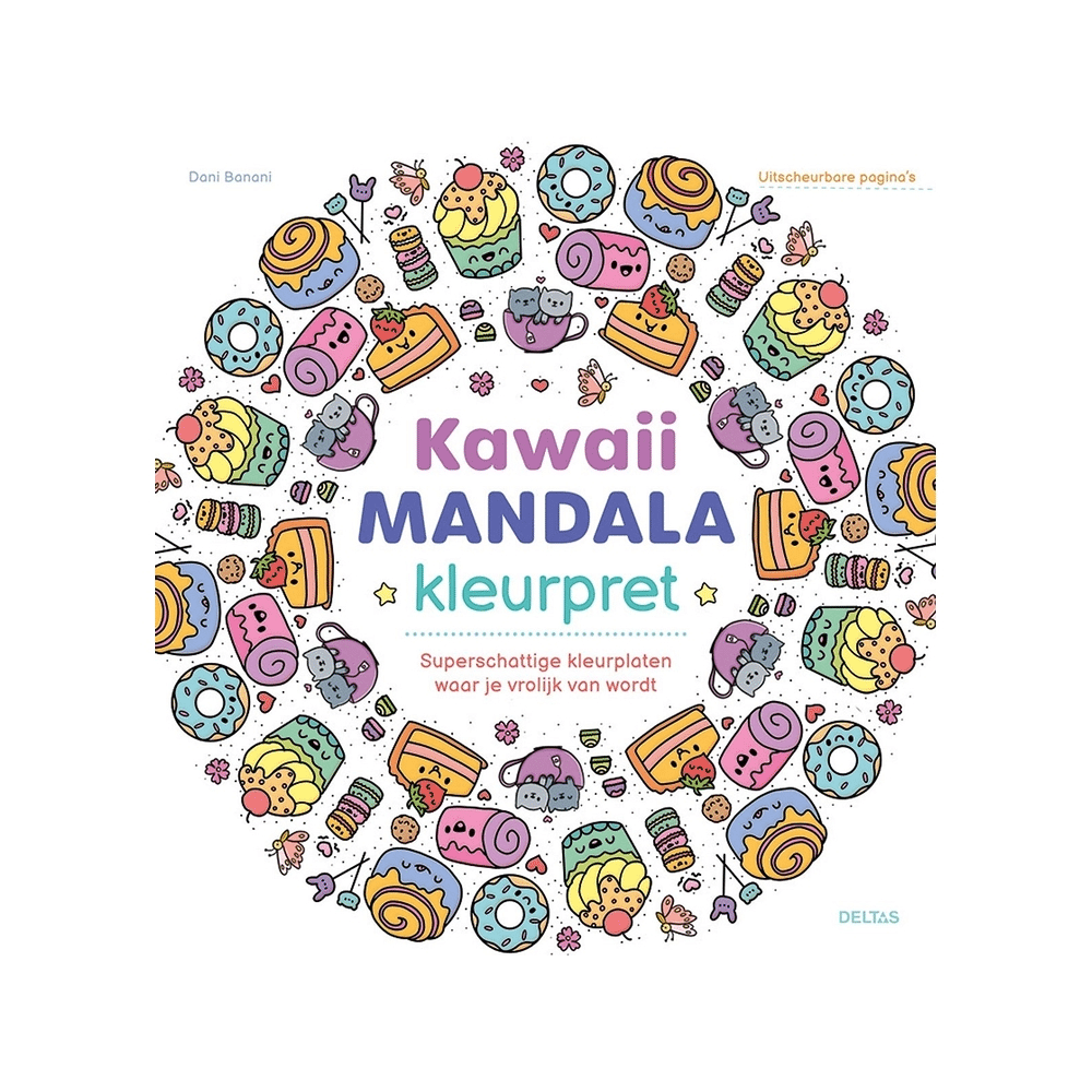 Vergeet de klassieke mandala’s... Deze schattige tekeningen zijn een feestje op papier! Ontwerpster Dani Banani mixt speelse kawaii-elementen met mandala’s vol fantasiefiguurtjes, cupcakes, diertjes en meer. Ideaal om je hoofd leeg te maken én je kleurskills te laten stralen.- Boordevol unieke kawaii mandala's
