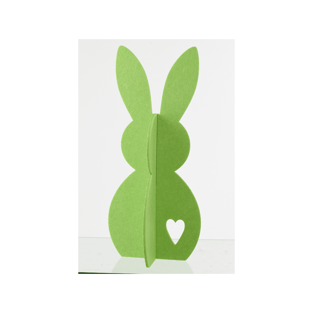 Dit konijn is gemaakt van duurzaam vilt en heeft een frisse groene kleur die een vrolijk en opvallend accent geeft in woonkamer, kinderkamer of op de vloer.