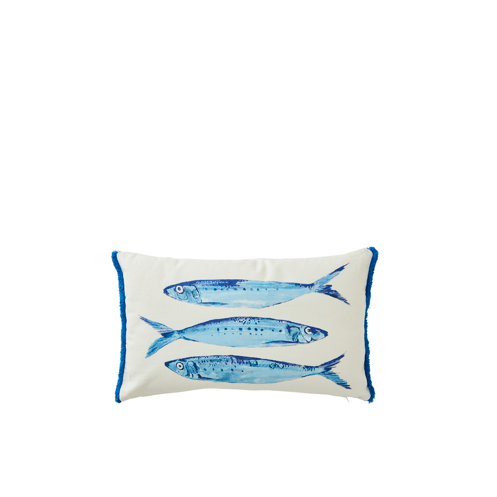 Kussen met Print 3 Sardienen Katoen Wit/blauw 50x30x10cm