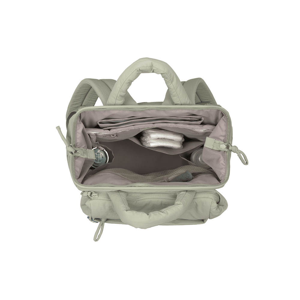 De Minea rugzak heeft slimme vakken en veel opbergruimte voor luiers, flesjes, snacks en persoonlijke spullen. De mintkleur geeft een frisse en vrolijke uitstraling.