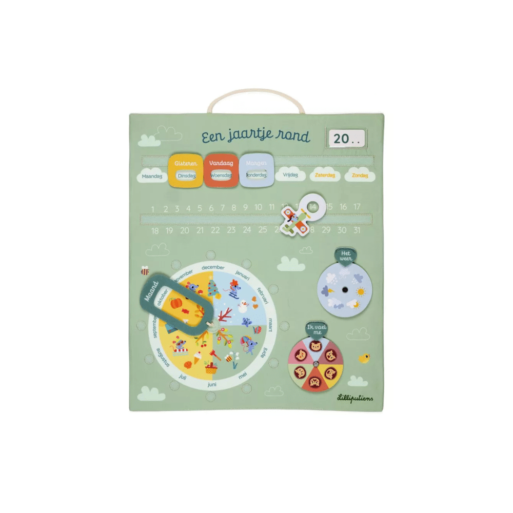 Met de Lilliputiens Een Jaartje Rond kalender leren kinderen spelenderwijs hoe de dagen en maanden verlopen. Deze kleurrijke kalender is een vrolijk hulpmiddel om de tijd te begrijpen en samen dagelijkse momenten te vieren.