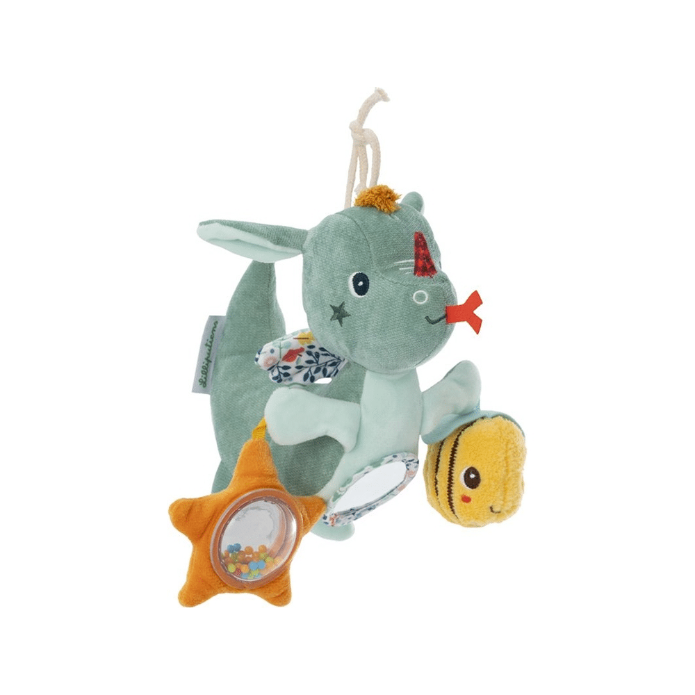 • Activiteitenspeeltje met bijtring, rammelaar en zachte delen