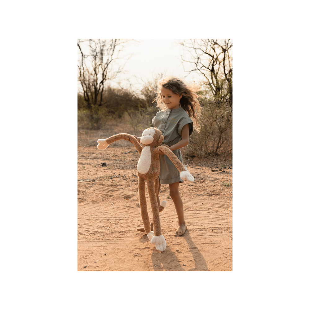 De Little Dutch Safari Friends knuffel slungel aap XL is een grote, zachte knuffelvriend die zorgt voor comfort, plezier en een gezellige sfeer in elke kinderkamer.