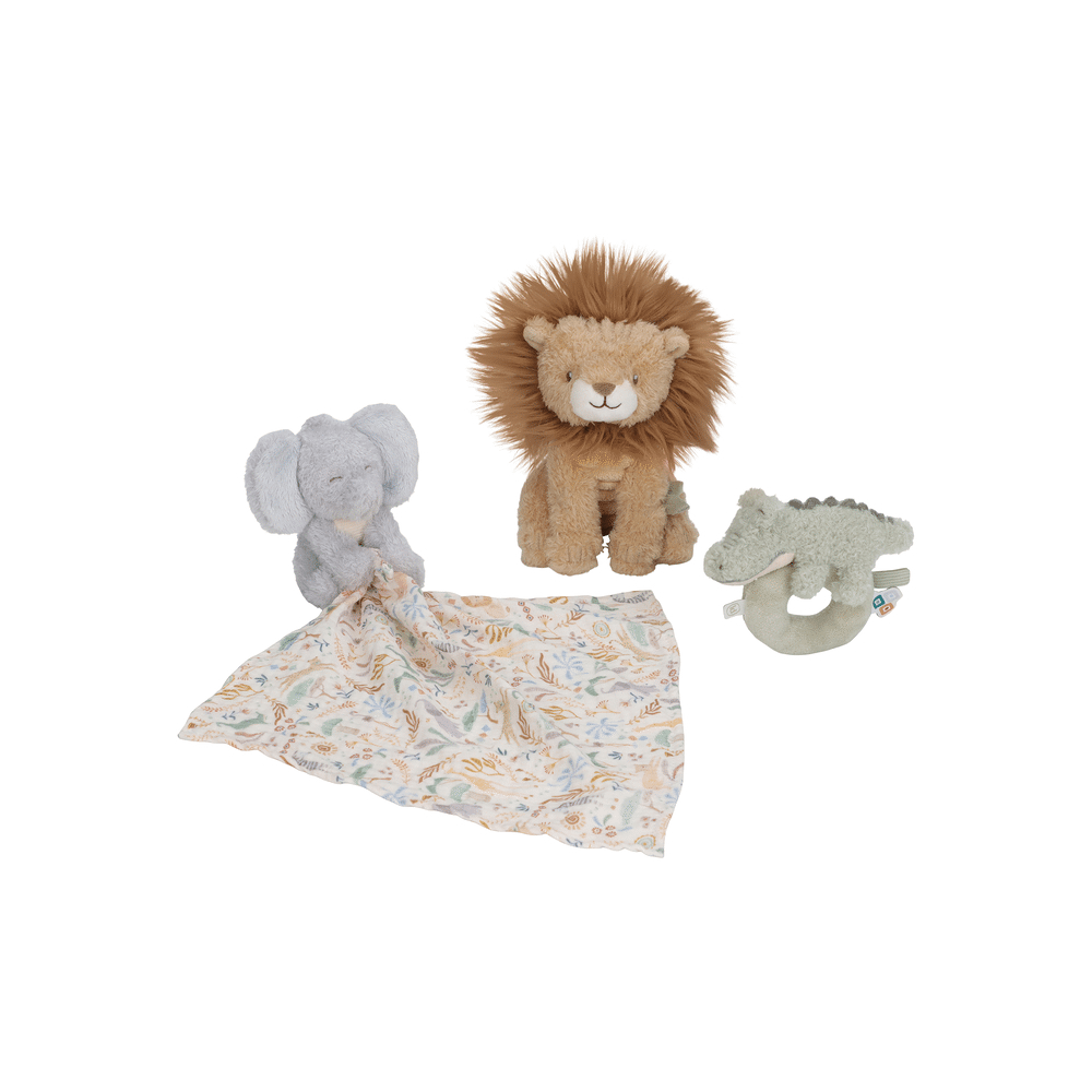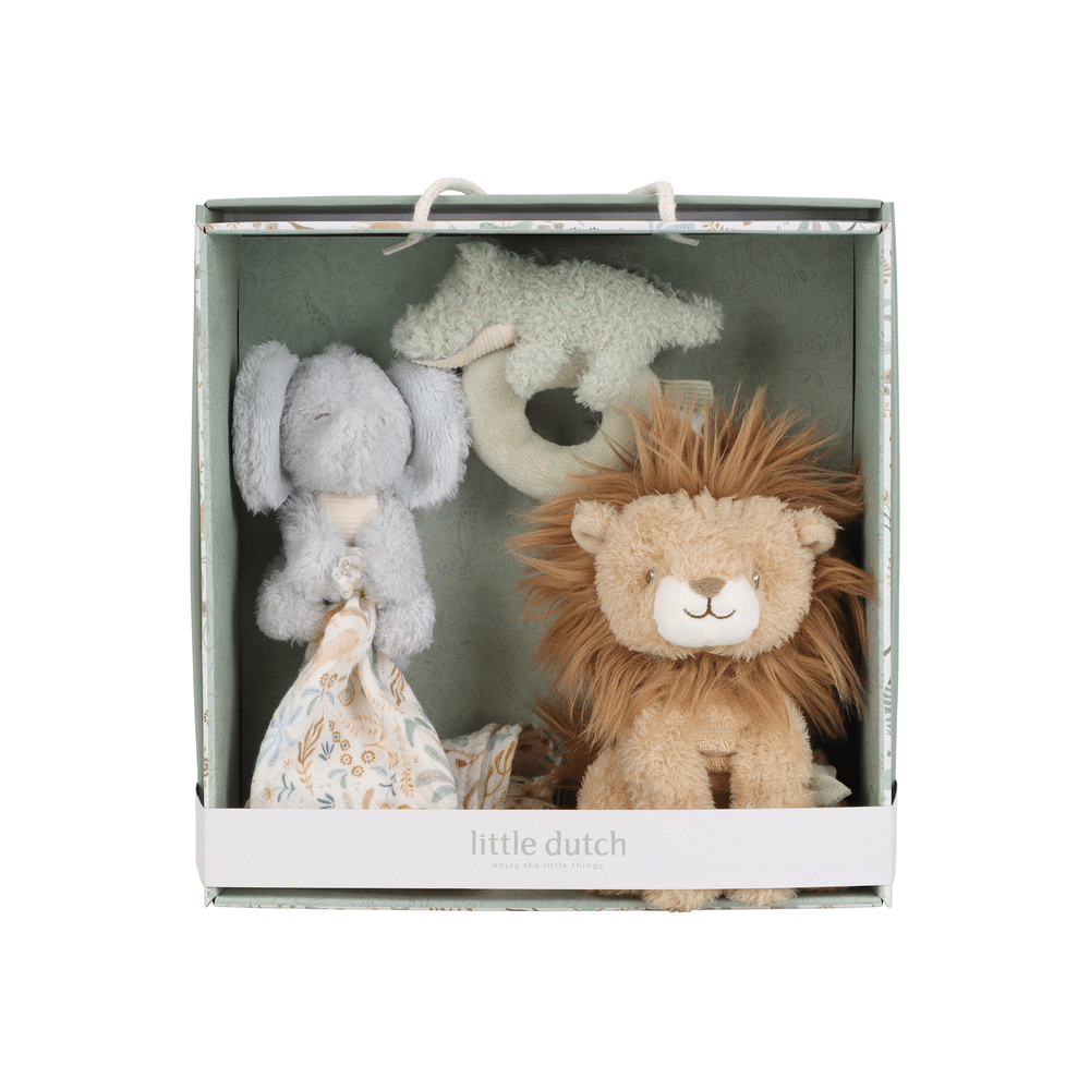 De Little Dutch Safari Friends Giftset is een complete en zachte speelset die leren en plezier combineert in een stijlvol cadeau.