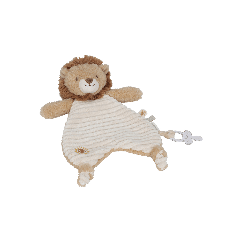 De lieve leeuw en zachte stoffen maken dit doekje niet alleen fijn om vast te houden, maar ook een eerste speelkameraadje dat de zintuigen stimuleert.