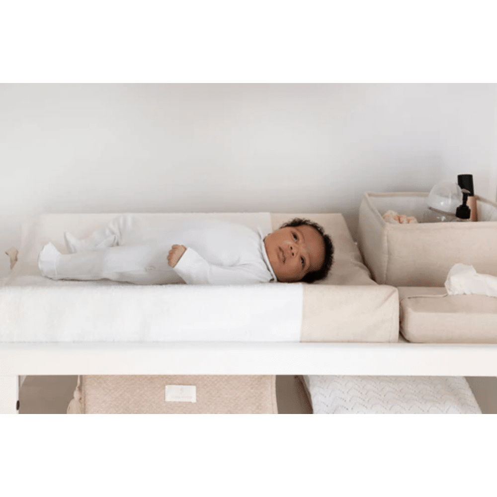 Deze duurzame linnen stof voelt heerlijk aan, is natuurlijk ademend en zorgt dat je kindje comfortabel blijft tijdens elke luierwissel. Het strakke, neutrale beige past in elk interieur en blijft mooi, zelfs na veel wassen.