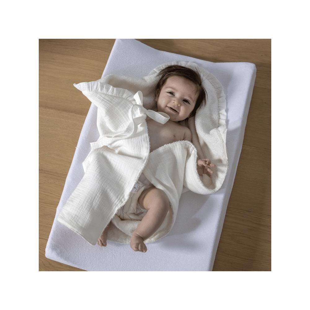 De Living Nature Luxe Handdoek Tetra/badstof Cosy maakt elk badmoment extra fijn. Deze slimme combinatie van luchtige tetra en zachte badstof zorgt voor snelle absorptie én een heerlijk comfortabel gevoel op de huid van je baby.