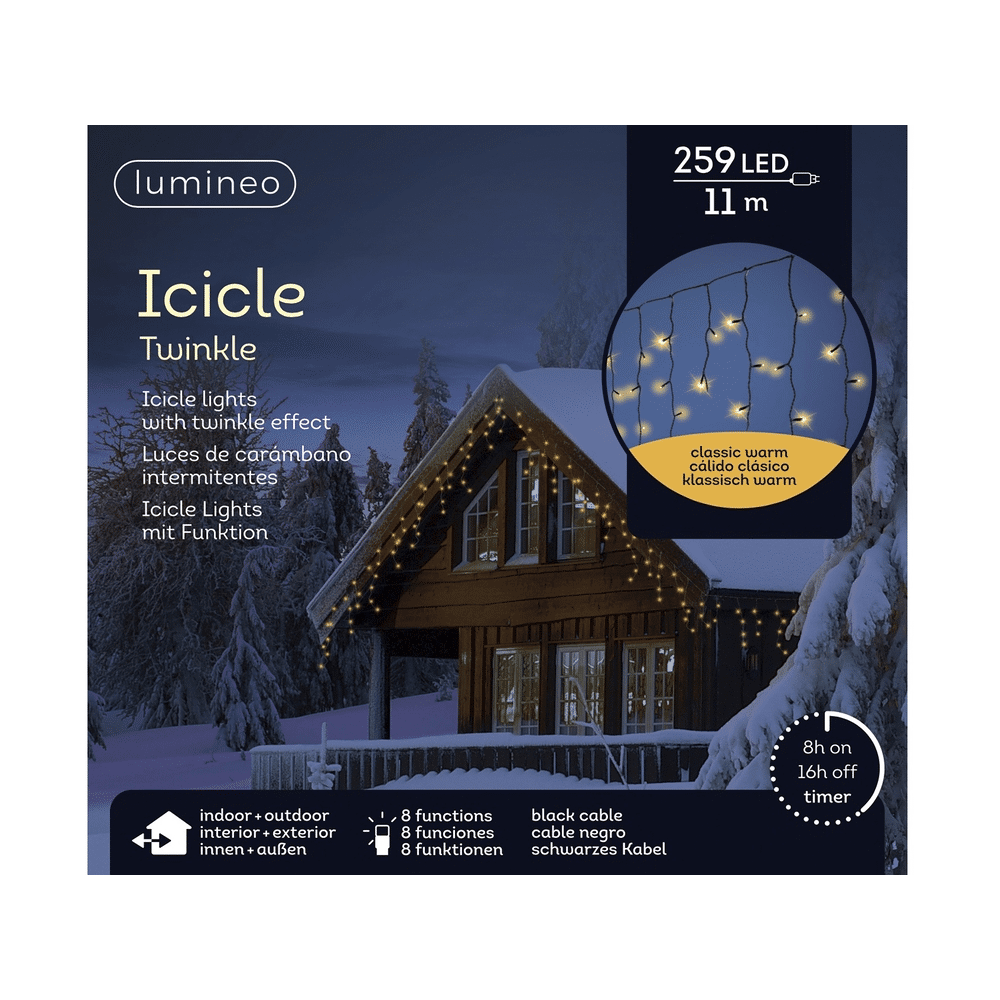 - Product: Lumineo Ijspegelverlichting 259 Leds 11m Twinkle Klassiek Warm