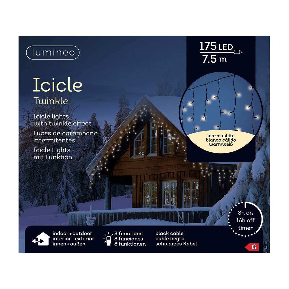 - Product: Lumineo Ijspegelverlichting Led Icicle Twinkle 7,5m 175 Led Warm Wit