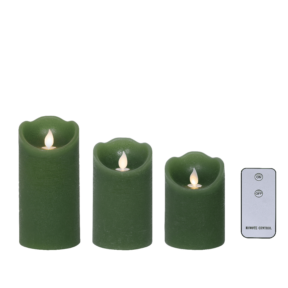 Lumineo Kaarsenset Led Groen /Warm Wit 3stuks