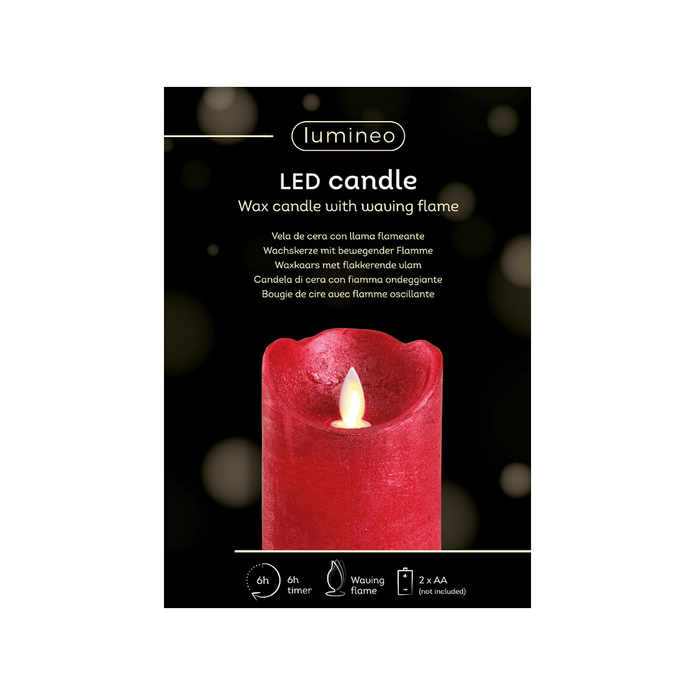 Breng instant gezelligheid in huis met deze rode LED-kaars van Lumineo. Dankzij het flikkerend vlammetje lijkt het net alsof er een echte kaars brandt, maar dan zonder rook of gedoe. Gemaakt uit echte wax met een rustieke look, past deze sfeermaker perfect in elk interieur. De bovenkant heeft een mooie golvende vorm, wat zorgt voor een extra elegante uitstraling. Je zet de kaars makkelijk neer waar je maar wil, want er komt geen snoer aan te pas. Ideaal voor op tafel, in de kast of op een plankje. En met de handige timerfunctie hoef je er zelfs niet meer naar om te kijken.