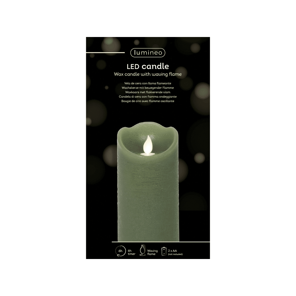 - Product: Lumineo Ledkaars Groen 15cm Warm Wit