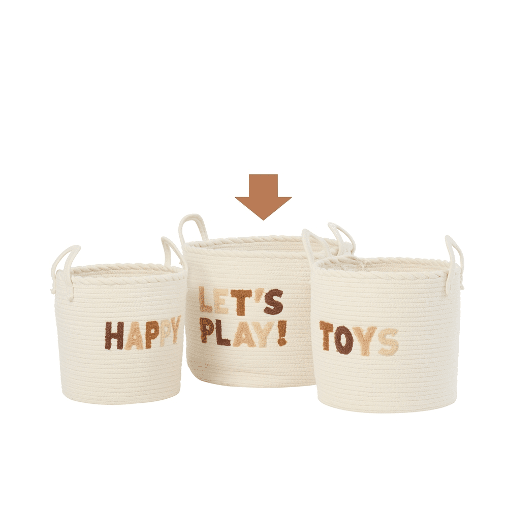 De Mand Kinderen Katoen Wit Bruin L 40x40x36cm is een grote, praktische en stijlvolle opbergmand voor speelgoed, knuffels en andere kleine spullen.
