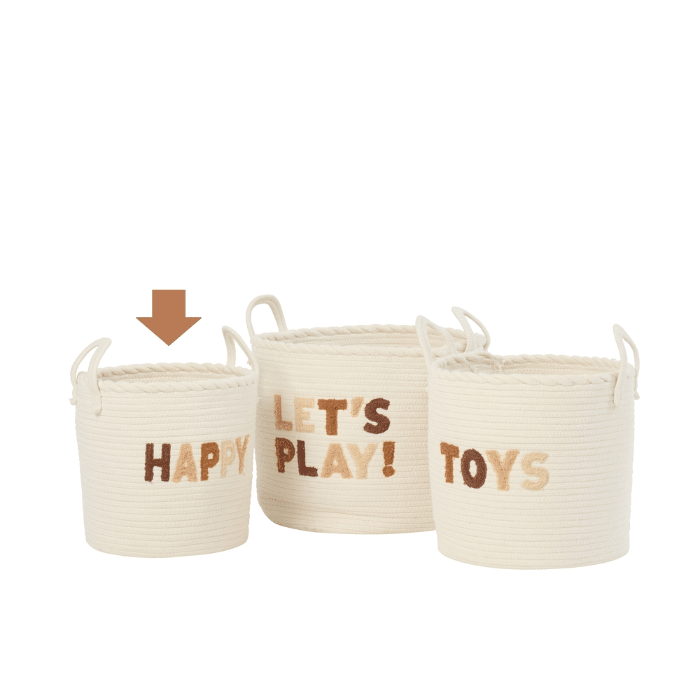 De Mand Kinderen Katoen Wit Bruin S 30x30x27cm is een praktische en stijlvolle opbergmand voor speelgoed en kleine spullen.