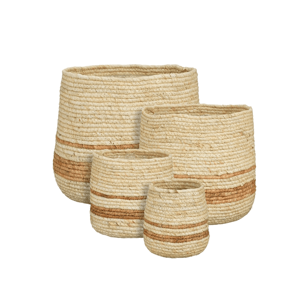 De middelgrote ronde mand biedt genoeg opbergruimte voor dekens, speelgoed of accessoires. Het touwkleurige design met bruine boord geeft een warme en elegante uitstraling.