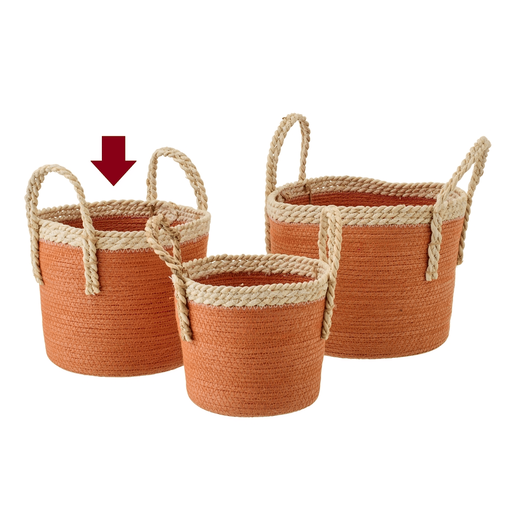 Met afmetingen van 25x25x21cm biedt deze mand voldoende ruimte voor al je kleine spullen. De oranje/naturelkleurige look geeft een frisse touch aan elke kamer.