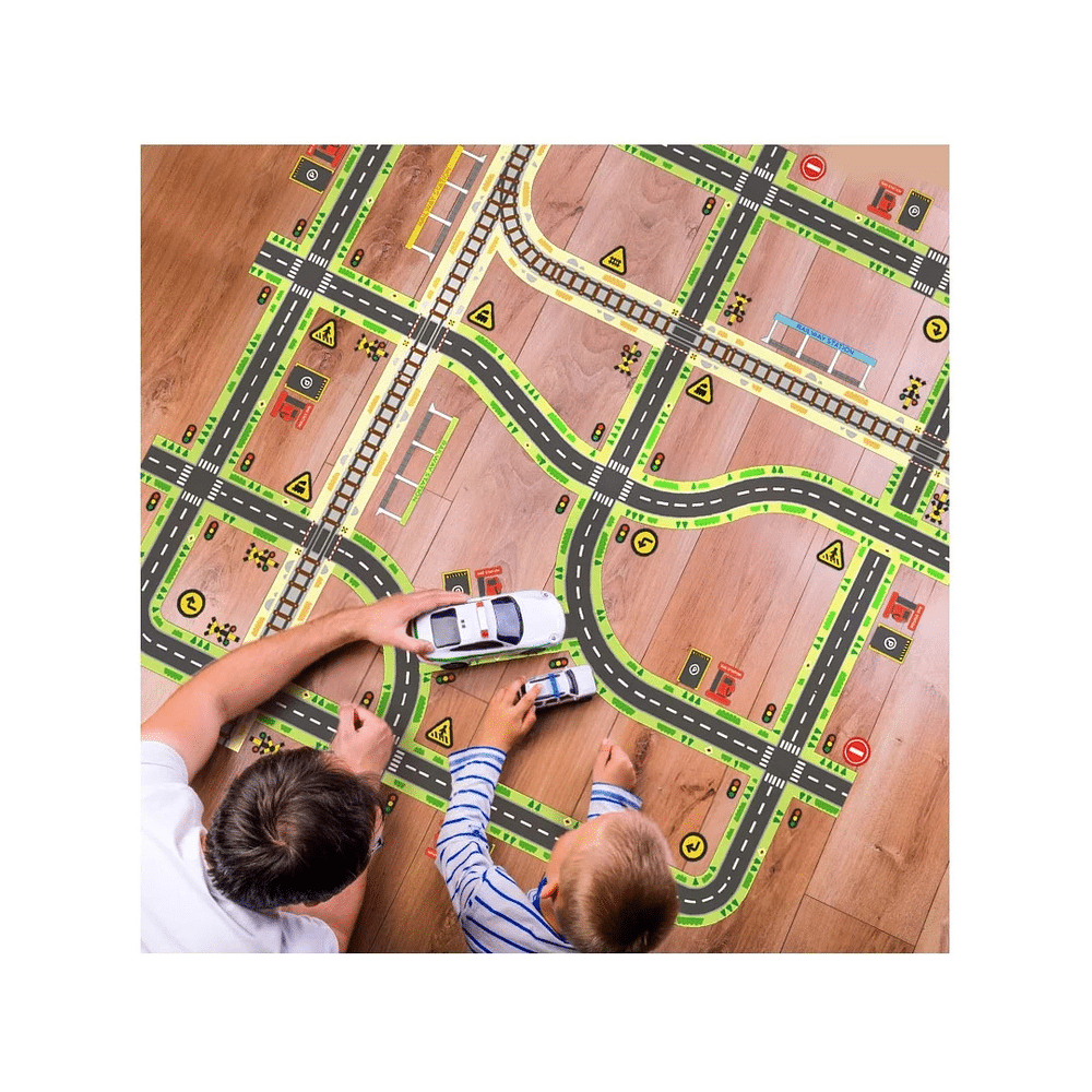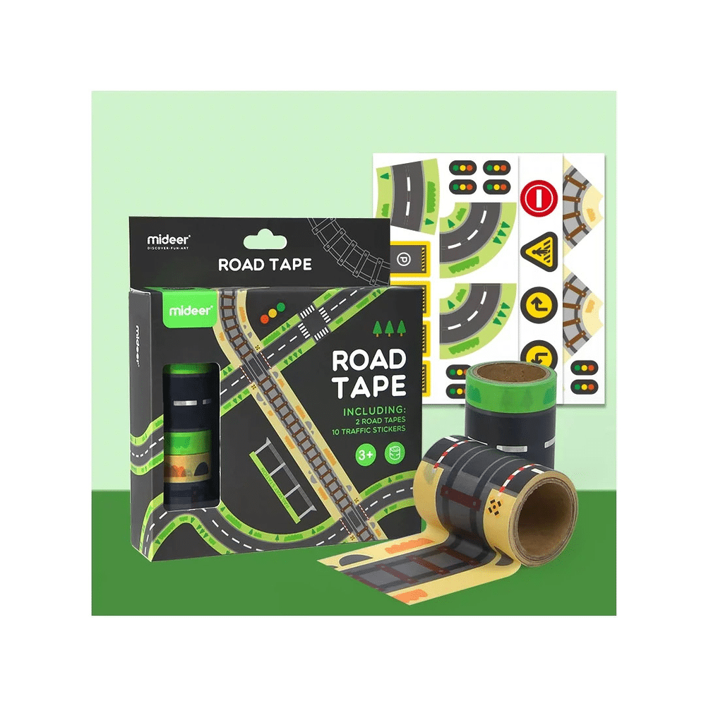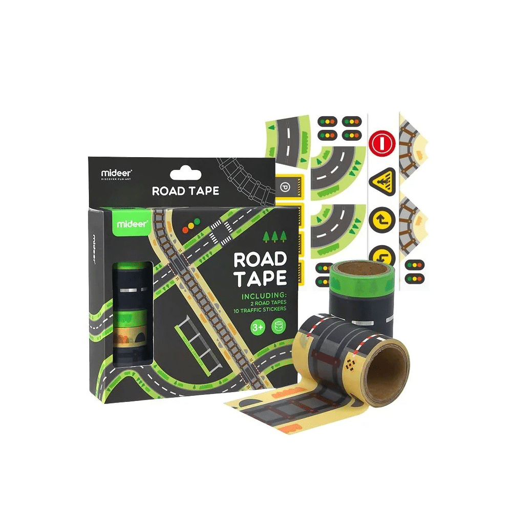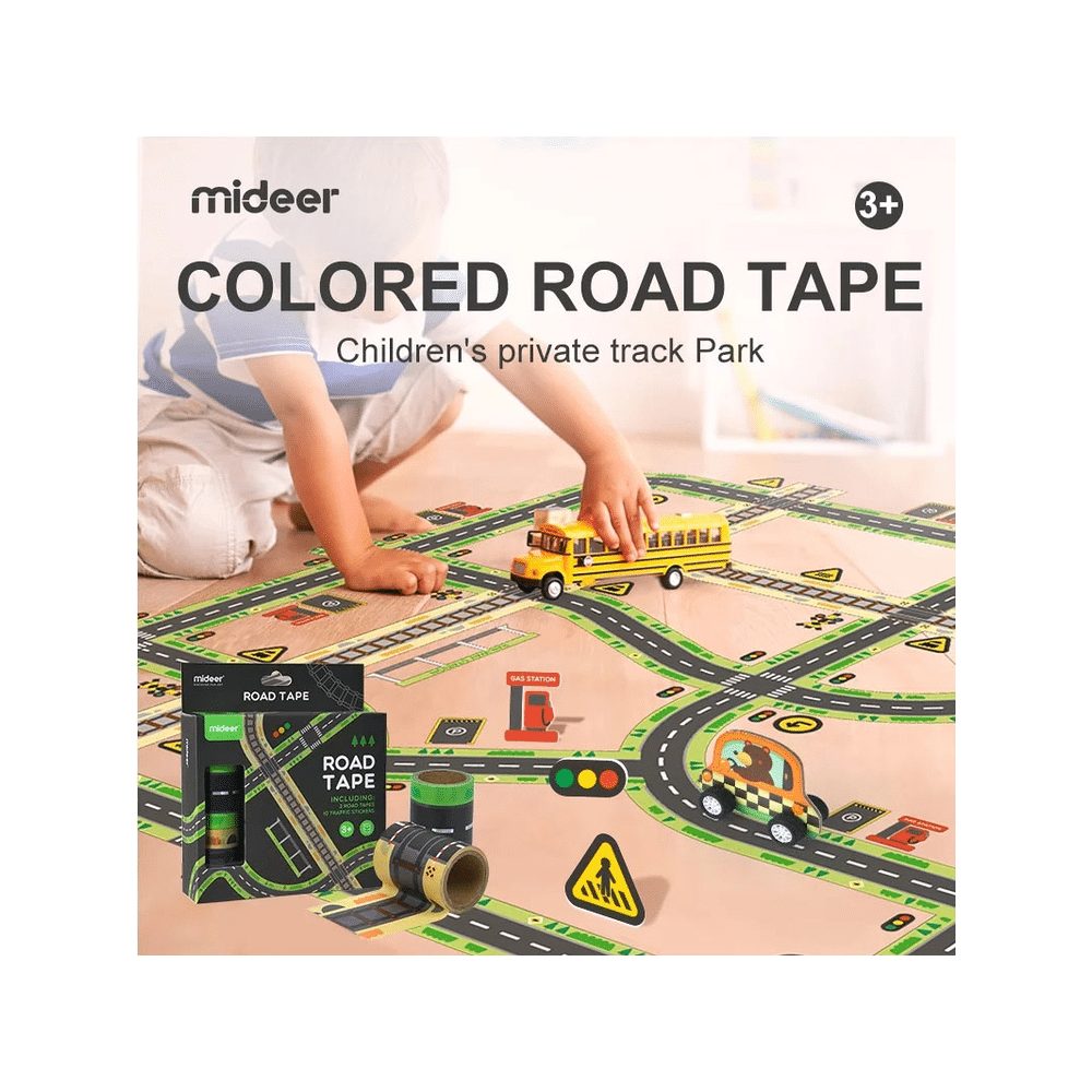 Laat je fantasie de vrije loop met deze superleuke verkeersset van Mideer! Met het wegstrokenplakband en de kleurrijke verkeersstickers ontwerp je in no-time een stad vol bochten, kruispunten en verkeersplezier. Klaar om je speelgoedauto’s tot leven te brengen?Speel, plak en plan je eigen verkeerswereld