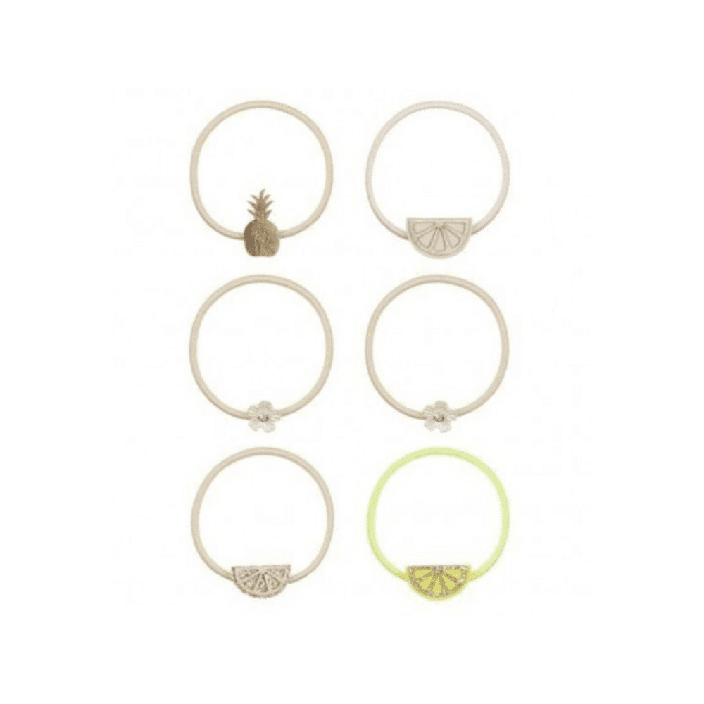• Meerdere elastiekjes met tropische accenten