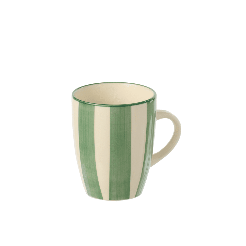 Mok Gestreept Aardewerk Groen/wit 11.3x8.5x10.2cm