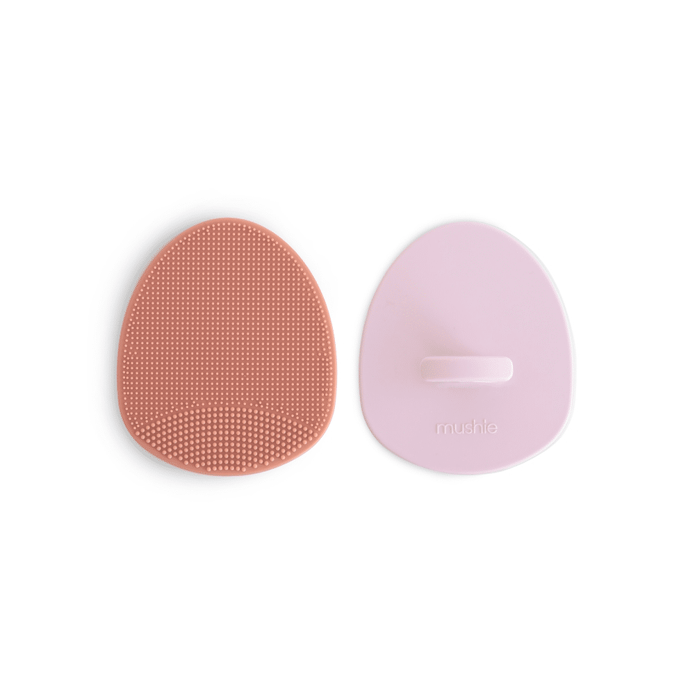 - Product: Mushie Cradle Cap Borstel 2-pack Rose/soft Lilac