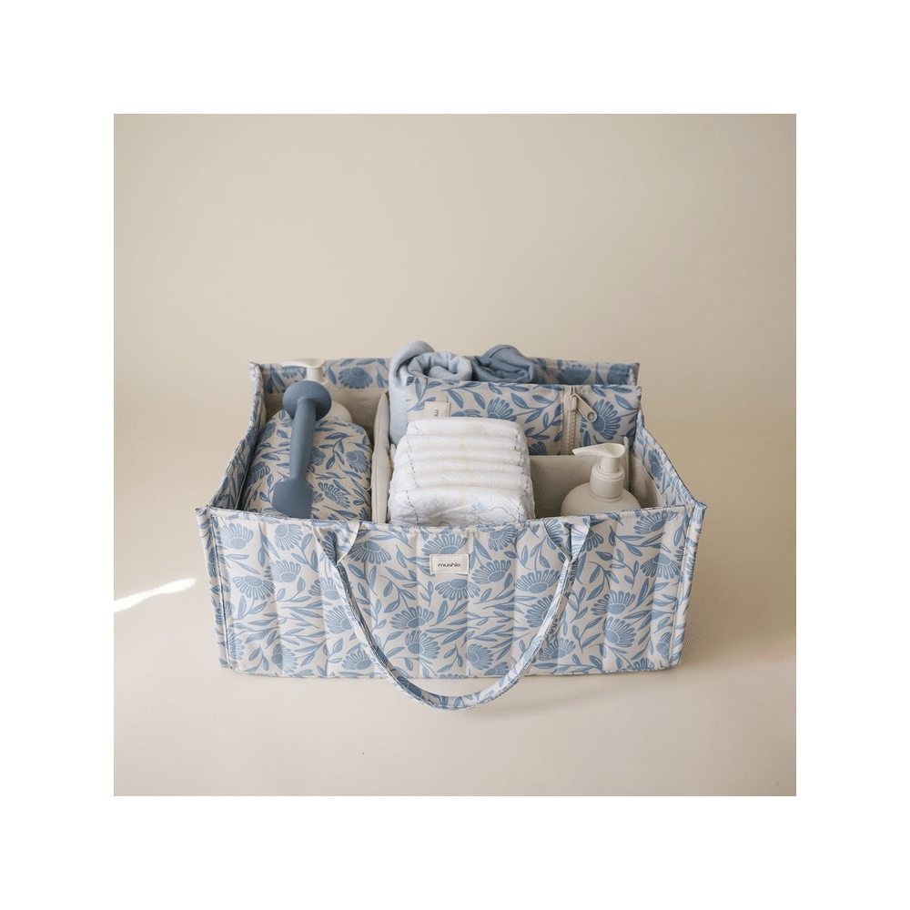 - Product: Mushie Luiermand Diaper Caddy Blue Flowers