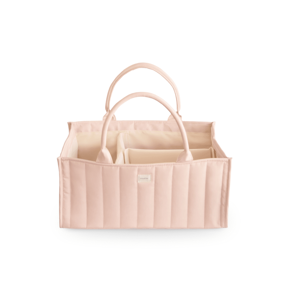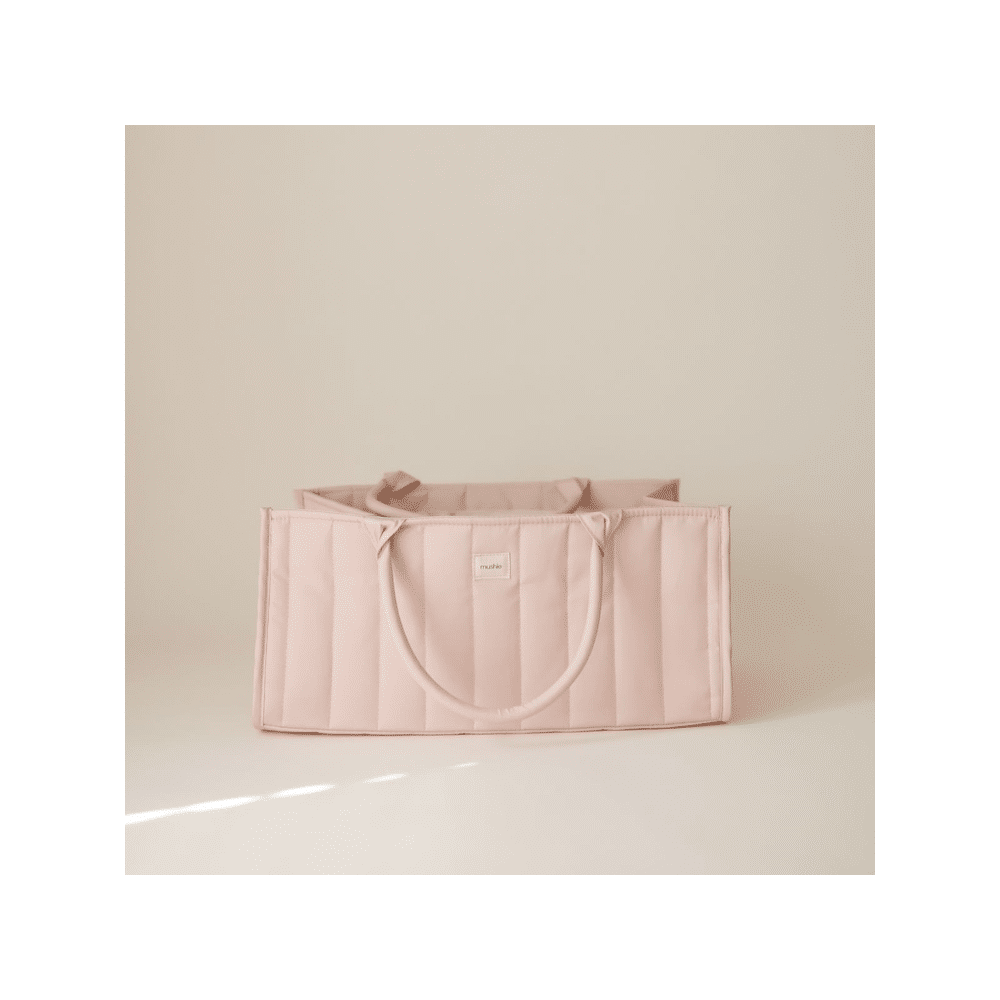 Met de Mushie luiermand in zachte blush tint hou je alle verzorgingsspullen netjes bij elkaar. Praktisch, elegant en perfect voor elke babykamer.