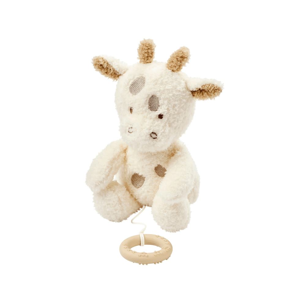 • Muziekknuffel in de vorm van een giraf met zachte teddystof