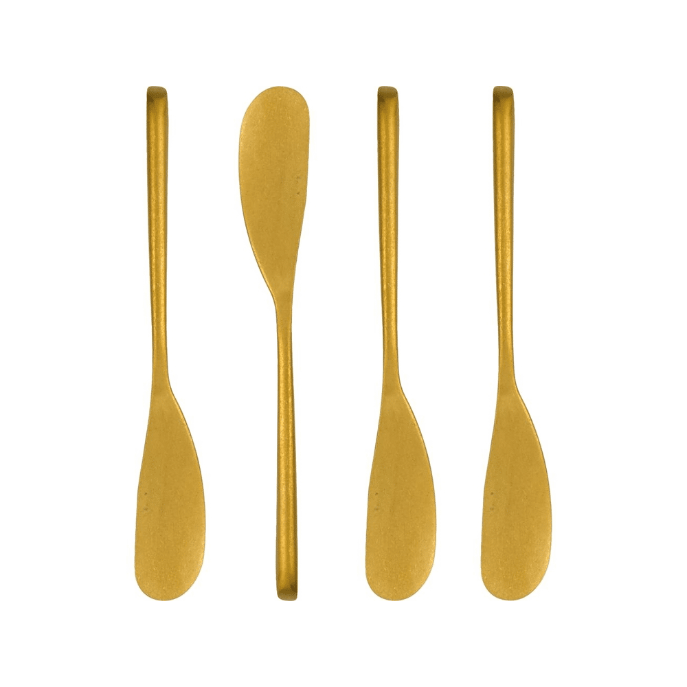 Nicolas Vahé Botermes Antiek Goud 4 Stuks biedt elegantie, kwaliteit en functionaliteit in één. Stijlvol, duurzaam en veelzijdig – ideaal voor een luxe en sfeervolle tafelsetting!Elegant serveren: Nicolas Vahé Botermessen Antiek Goud
