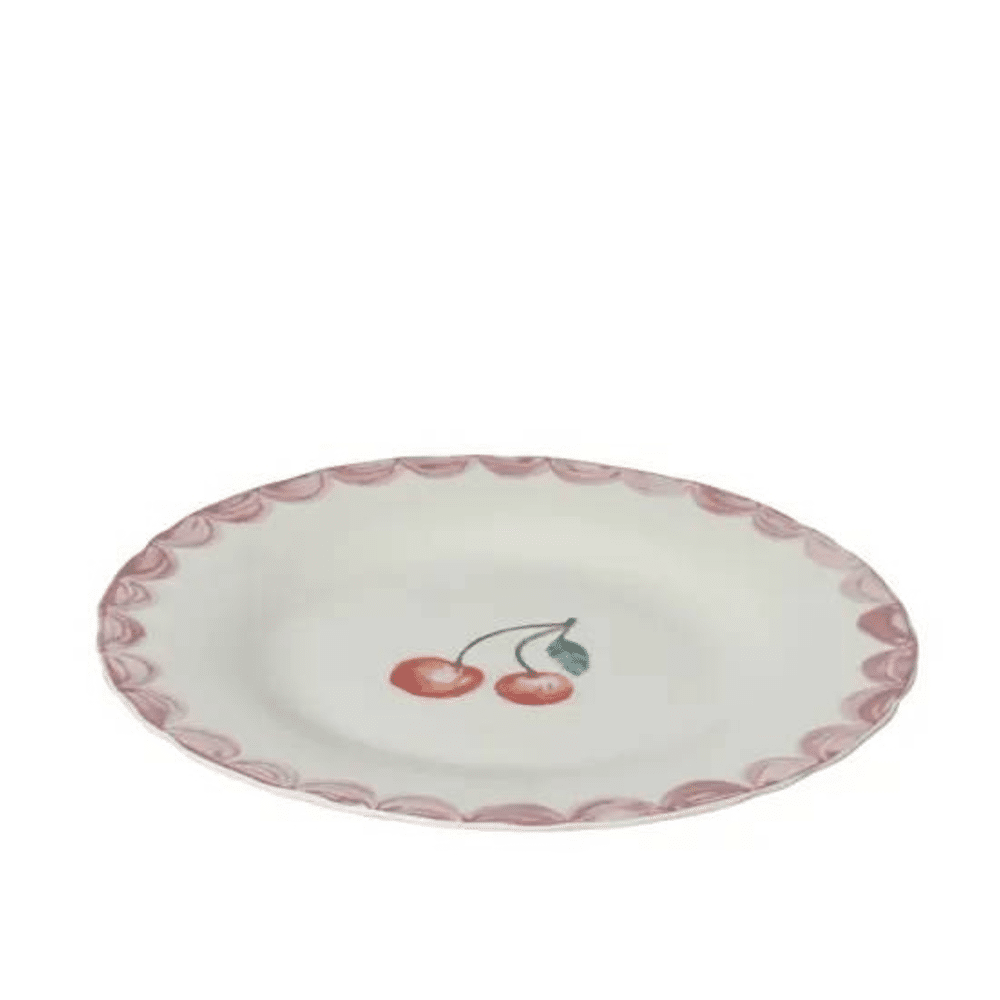 Het bord is gemaakt van hoogwaardig porselein, duurzaam, krasbestendig en makkelijk schoon te maken. Het decoratieve kersdetail voegt een speels accent toe, terwijl het bord praktisch blijft voor dagelijks gebruik.