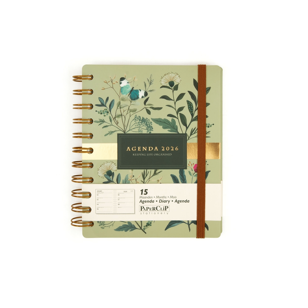 De Paperclip flexi cover agenda Botanica combineert praktisch plannen met een stijlvolle look. De flexibele kaft ligt comfortabel in de hand en maakt de agenda geschikt voor dagelijks gebruik, thuis, op school of op het werk. Het botanische ontwerp straalt rust uit.