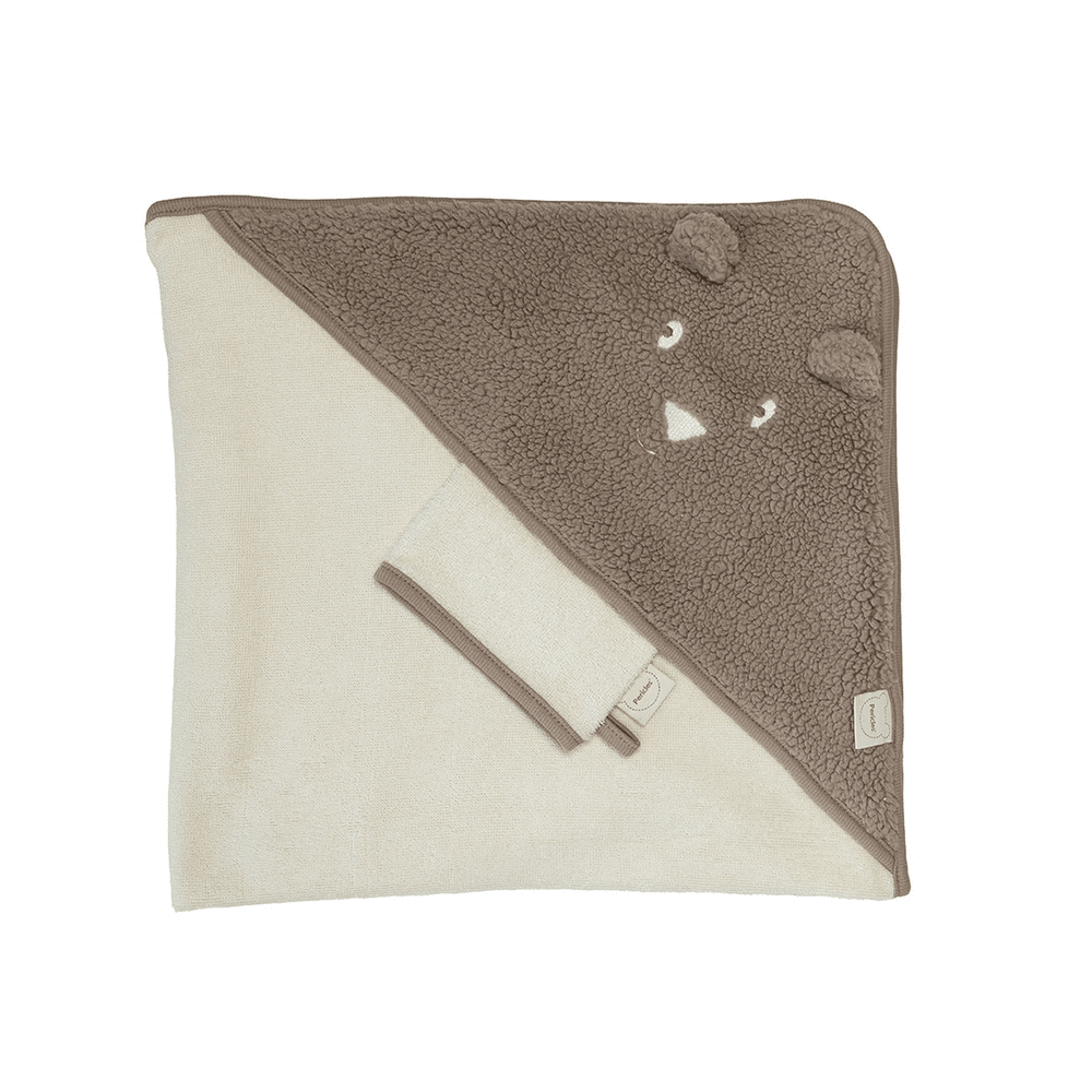 Pericles Badcape+washandje Bear Teddy Chocolate