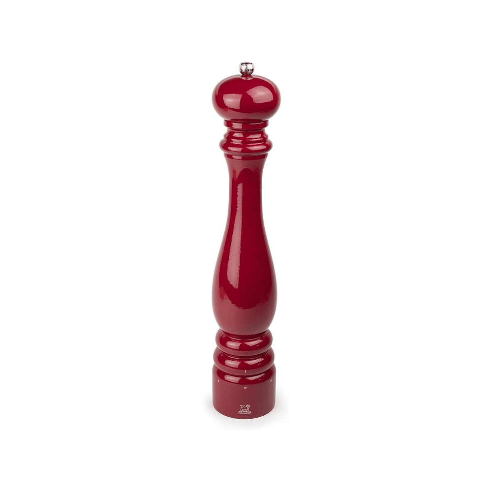 Met de Peugeot U-Select Pepermolen 40cm Passierood voeg je een vleugje kleur en elegantie toe aan jouw tafel. Deze pepermolen is niet alleen een eyecatcher, maar ook een krachtig hulpmiddel in de keuken. Dankzij het U-Select systeem kun jij eenvoudig de maalstand aanpassen, van grof tot fijn, zodat je altijd de perfecte pepermoleninstelling hebt voor jouw gerechten. Het robuuste houten ontwerp in een prachtige passierode kleur zorgt voor een moderne uitstraling, terwijl het traditionele Peugeot-mechanisme zorgt voor een vlotte werking. Of je nu een beetje peper over je salade strooit of een krachtigere smaak nodig hebt voor je stoofpot, met deze pepermolen heb je altijd controle over de smaak. Het ideale accessoire voor elke kookliefhebber die stijl en functionaliteit waardeert.