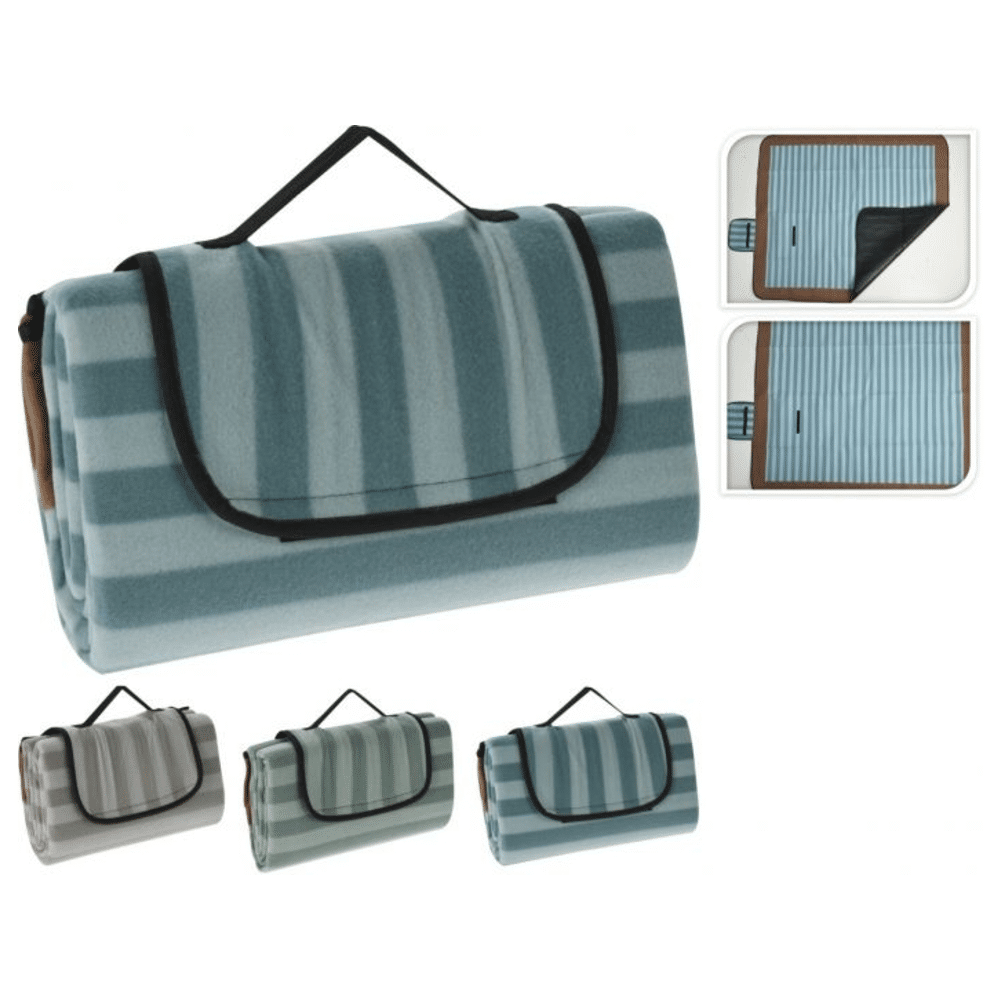 Picknickdeken 130x150 cm gestreept - Verkrijgbaar in 3 kleuren (Blauw, groen, grijs) - 1 stuk