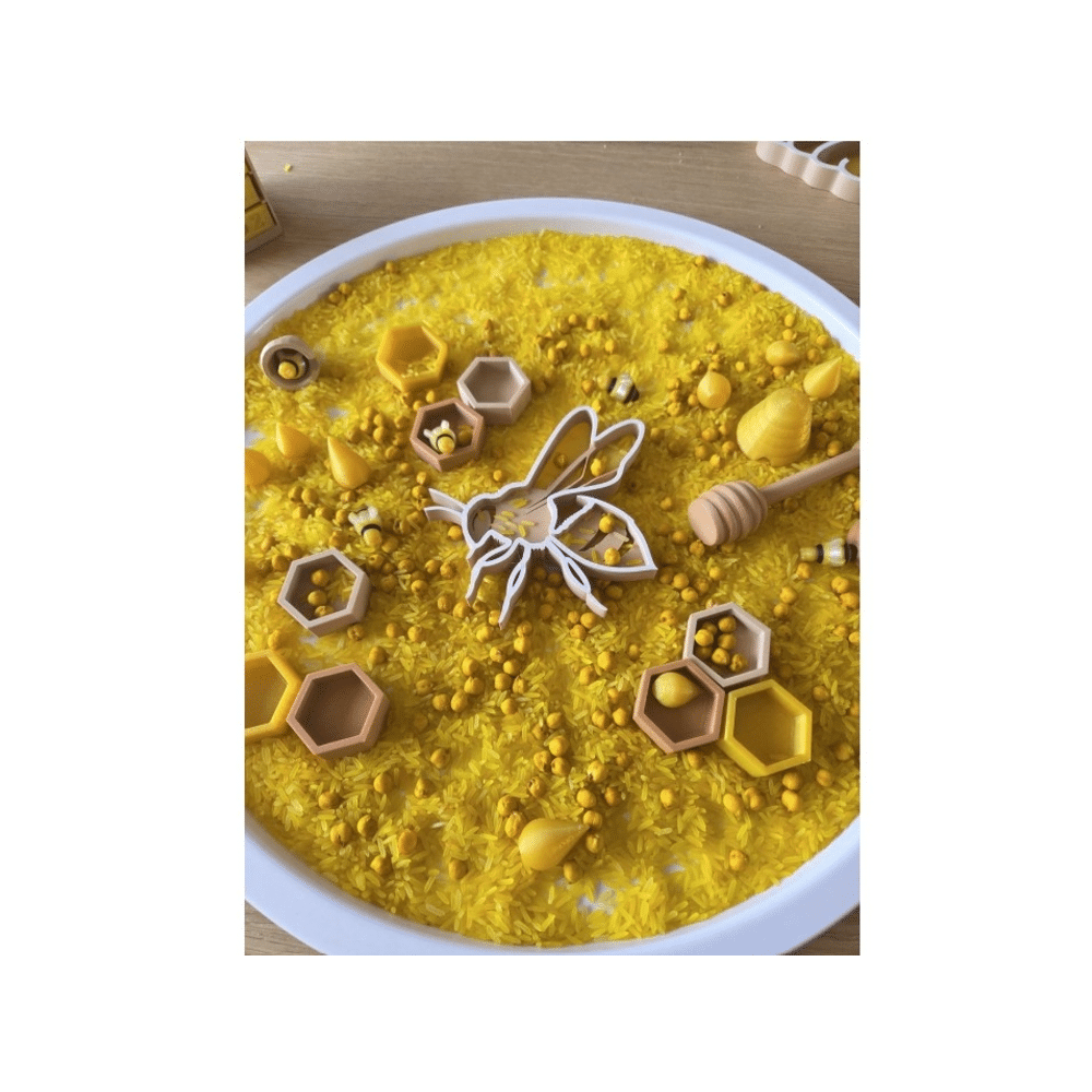 - 500g bijenrijst en honingdruppels als speelmateriaal