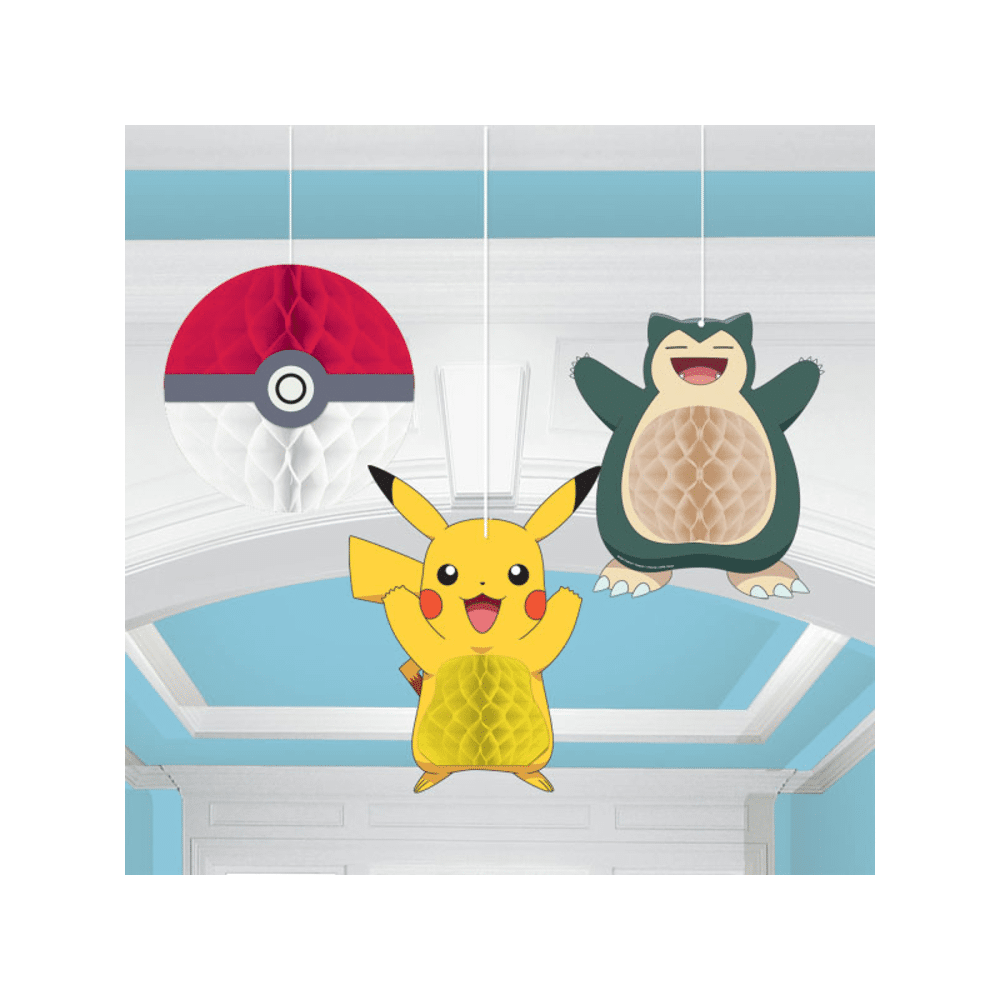 Deze 3-delige Pokemon honeycomb versiering is de perfecte manier om elk feestje kleurrijk en feestelijk te maken!- 3 stuks in vrolijke kleuren