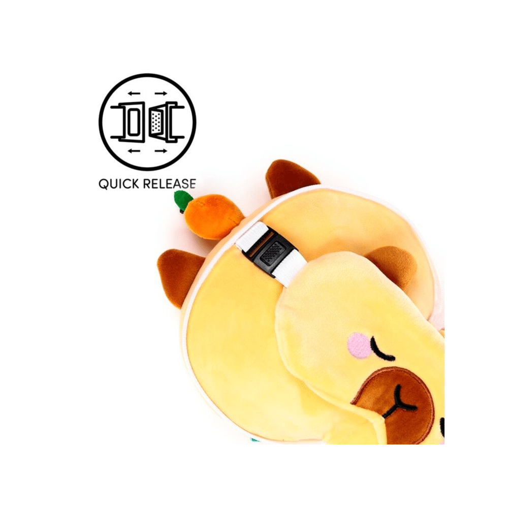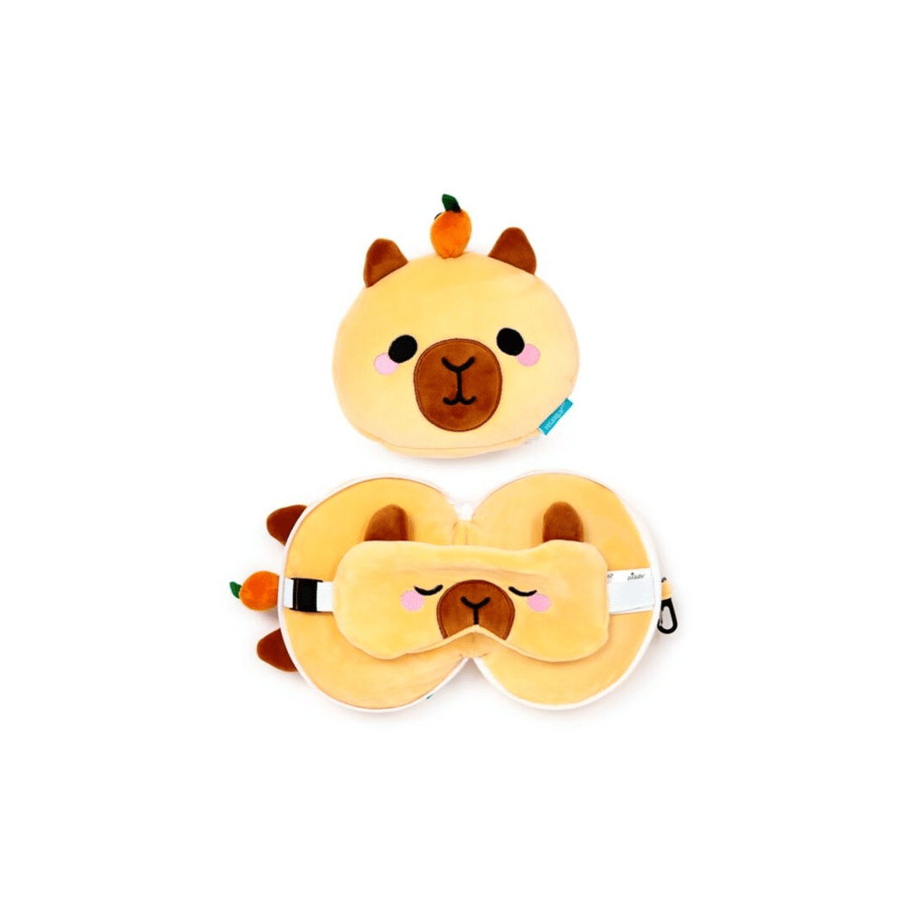 Maak van elke trip een moment van ontspanning met het Relaxeazzz Duke de Capybara plush reiskussen en oogmasker. Zacht, compact en super schattig, perfect voor onderweg of thuis.