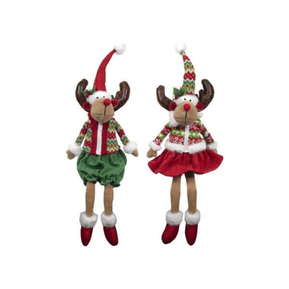 Rendier Zittend Rood/groen 20x14x64cm Assortiment Prijs Per Stuk