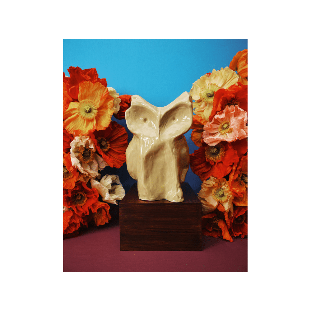De Serax After Midnight Vaas Uil in geel is een stijlvolle en speelse decoratieve vaas, perfect voor bloemen of als opvallend statement in je interieur
