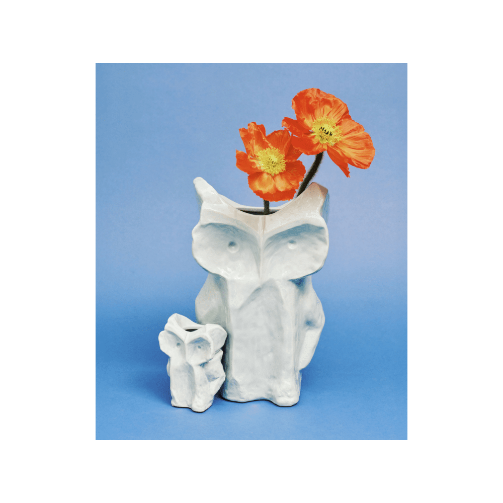 De Serax After Midnight Vaas Uil 9cm in licht blauw is een charmante en compacte decoratieve vaas, perfect voor kleine bloemen of als rustig statement in je interieur
