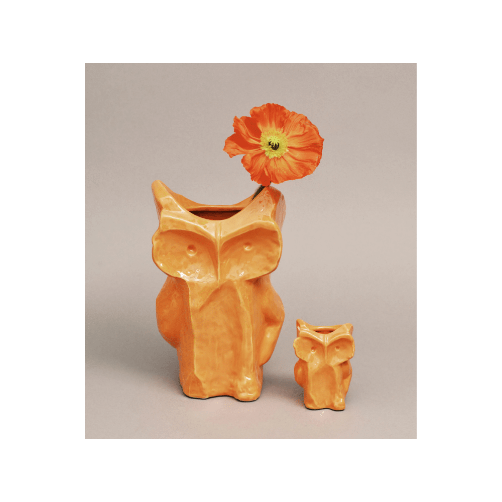 Breng levendigheid en stijl in je interieur met de Serax After Midnight Vaas Uil in oranje. Deze grote uilvormige vaas is ideaal voor bloemen of als opvallend decoratiestuk en geeft elke ruimte een warme, speelse touch