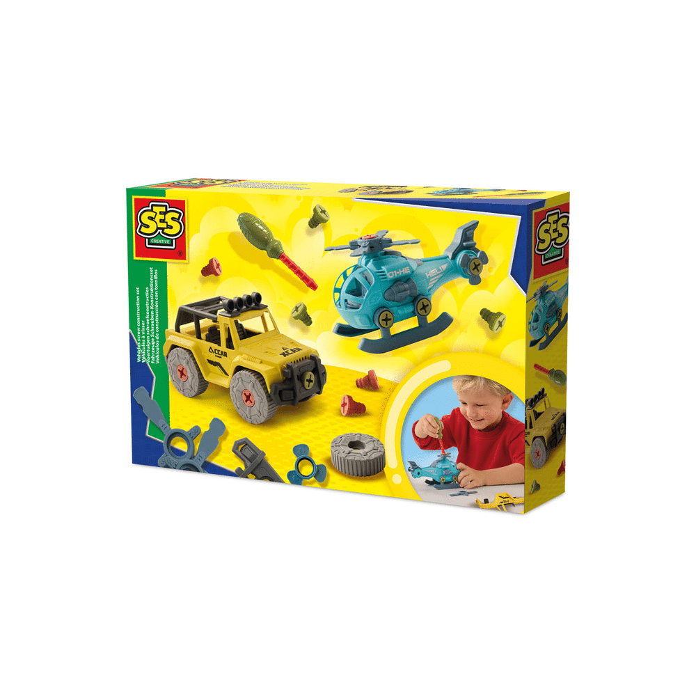 Met de Voertuigen schroefconstructies van SES Creative beleef je uren bouwplezier. Jij zet stap voor stap een stoere helicopter en terreinwagen in elkaar met een veilige schroevendraaier. Klaar? Dan begin je gewoon opnieuw. Ideaal voor nieuwsgierige bouwers die graag ontdekken hoe dingen werken.