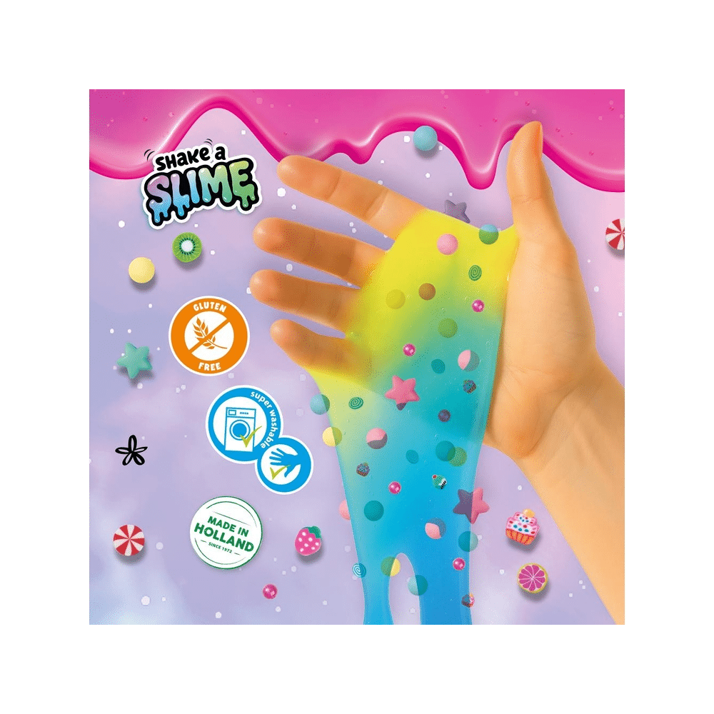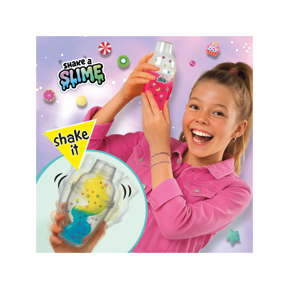 Kies je favoriete kleuren, voeg decoraties toe en shake alles in de beker. Dankzij het uitwasbaar slijm speel je zorgeloos en zonder knoeien met lijm.