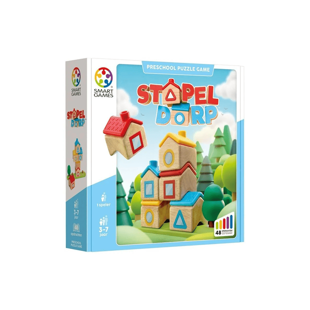 Met Smart Games Stapeldorp bouw je samen met je kind een vrolijk en kleurrijk dorp. Door houten huisjes slim te stapelen en te draaien, ontdekt je kind spelenderwijs hoe alles perfect past. Ideaal voor uren leerzaam speelplezier.